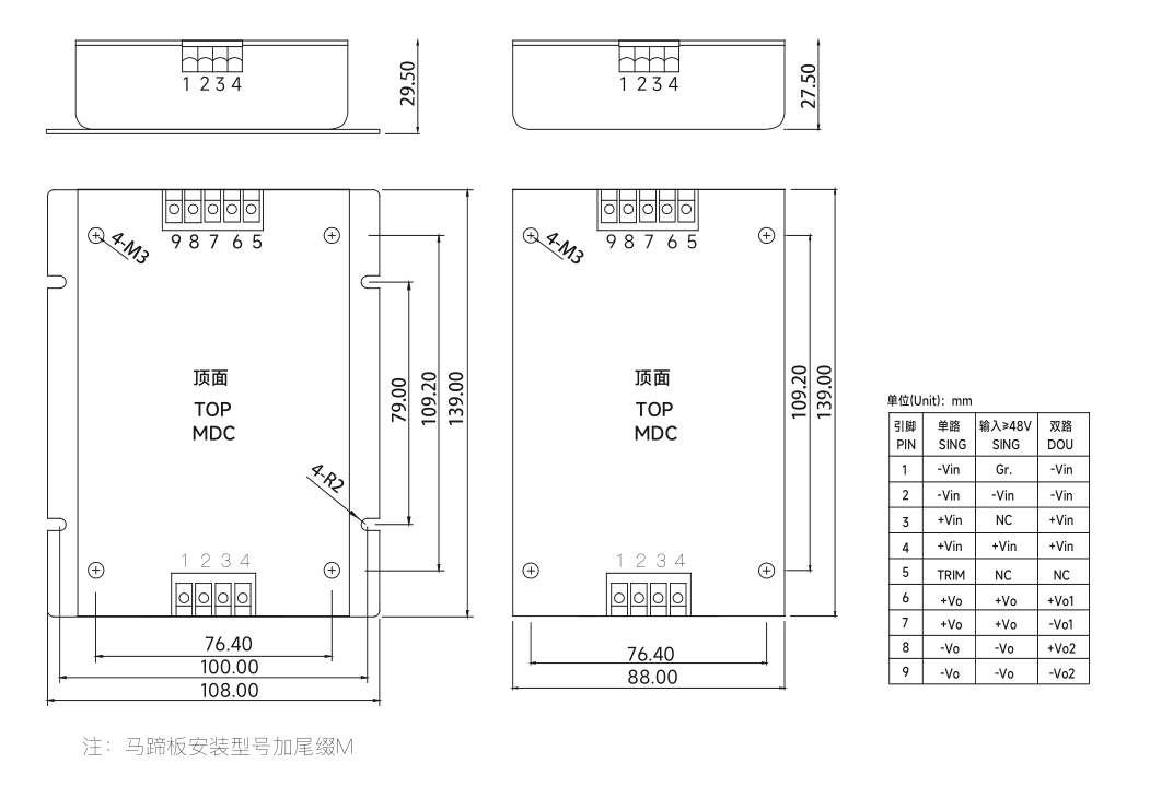 MDC40-200W 系列DC-DC隔离电源模块-铭锌科技