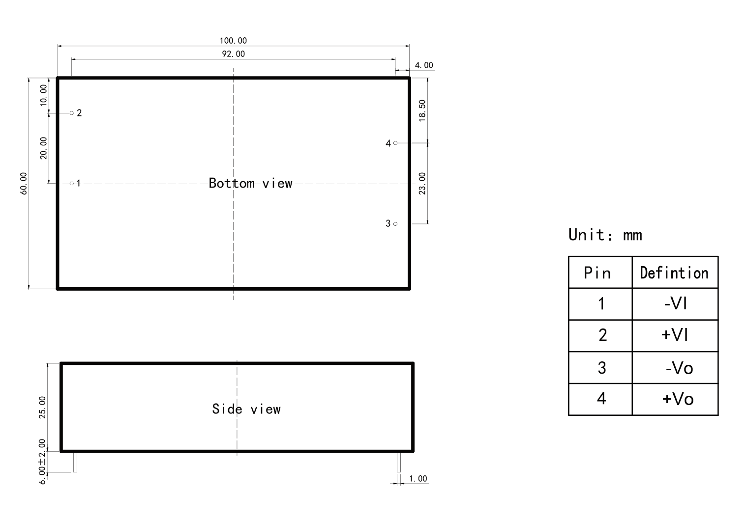 Unless specified, test conditions are as follows: ambient temperature 25℃, humidity <75%, input voltage 1000VDC and output rated load.